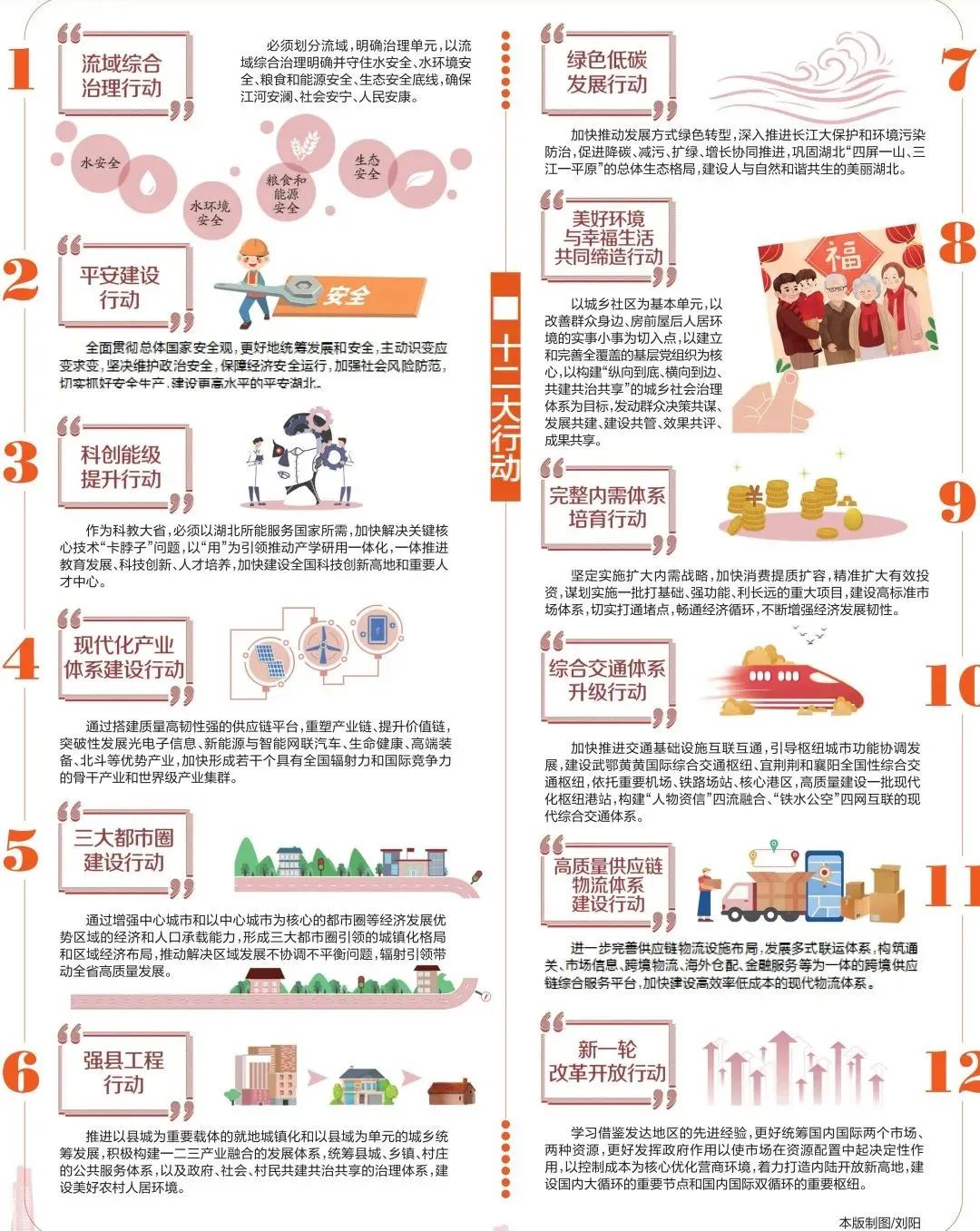 4月18日,湖北省政府新聞辦召開(kāi)《關(guān)于加快建設(shè)全國(guó)構(gòu)建新發(fā)展格局先行區(qū)的實(shí)施意見(jiàn)》(以下簡(jiǎn)稱《實(shí)施意見(jiàn)》)精神解讀系列新聞發(fā)布會(huì)第一場(chǎng)。《實(shí)施意見(jiàn)》共分三大部分和附件。第一部分是總體要求,主要闡述文件起草的指導(dǎo)思想、總體思路、基本原則、主要目標(biāo);第二部分是主體,圍繞統(tǒng)籌發(fā)展和安全、統(tǒng)籌城鄉(xiāng)區(qū)域和資源環(huán)境、統(tǒng)籌國(guó)內(nèi)國(guó)際兩個(gè)市場(chǎng)兩種資源,部署“十二大行動(dòng)”(具體內(nèi)容見(jiàn)下圖);第三部分從組織領(lǐng)導(dǎo)、完善配套政策、加強(qiáng)考核評(píng)估等方面強(qiáng)調(diào)了推進(jìn)實(shí)施的保障措施。附件為加快建設(shè)全國(guó)構(gòu)建新發(fā)展格局先行區(qū)的主要指標(biāo),設(shè)定了71項(xiàng)數(shù)據(jù)指標(biāo)。