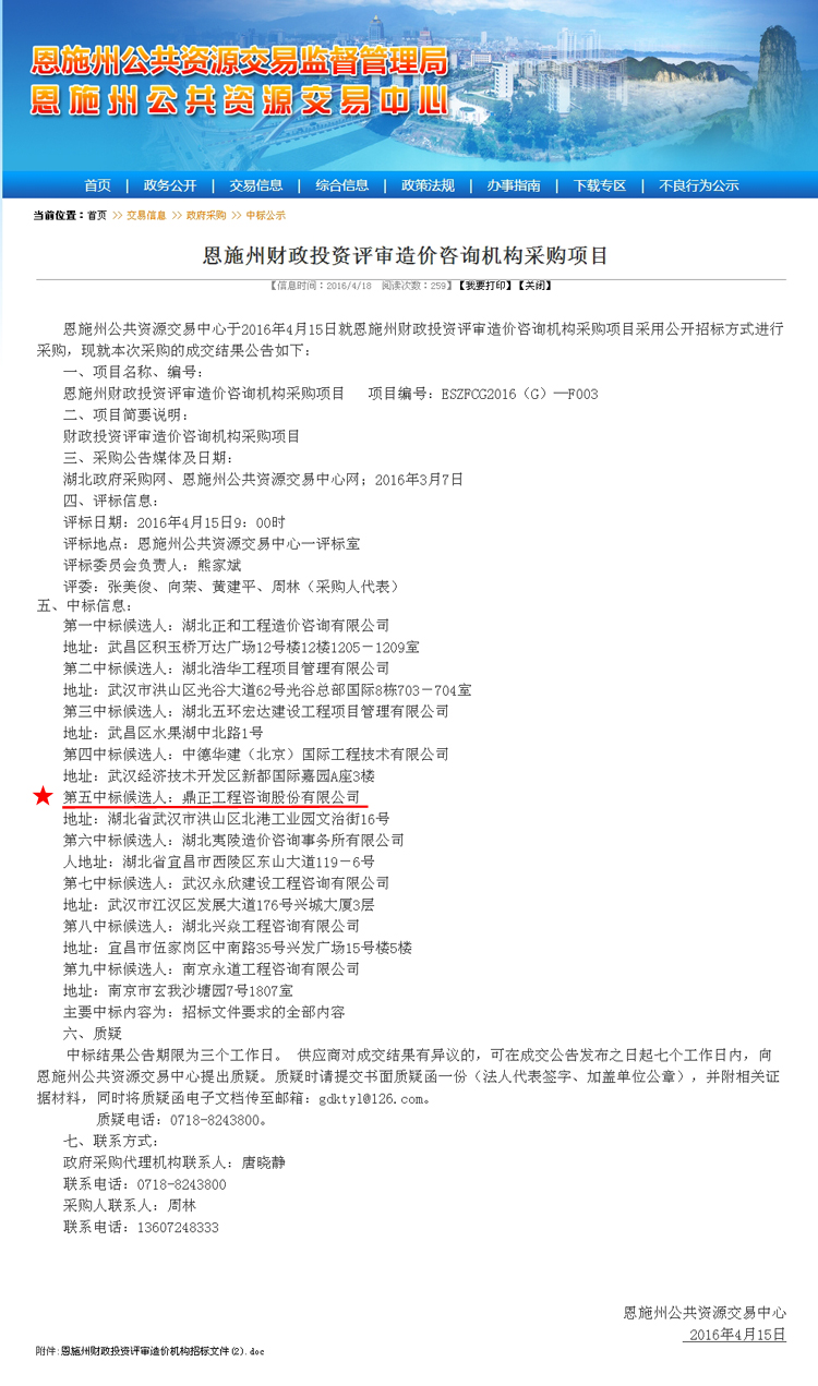 【經(jīng)營成果】我司中標(biāo)恩施州財(cái)政投資評審造價(jià)咨詢機(jī)構(gòu)采購項(xiàng)目