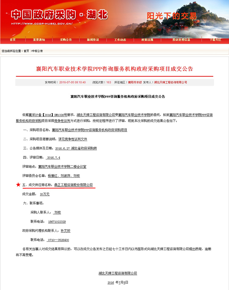 【經(jīng)營(yíng)成果】我司中標(biāo)襄陽(yáng)汽車職業(yè)技術(shù)學(xué)院PPP咨詢服務(wù)機(jī)構(gòu)政府采購(gòu)項(xiàng)目
