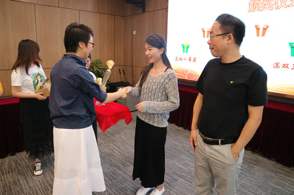 副總經(jīng)理毛迎霞為混雙三等獎(jiǎng)獲得者王雁然、張愉頒獎(jiǎng)