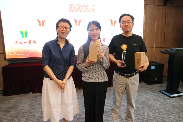 混雙二等獎(jiǎng)獲得者楊峰、胡章蓉合影留念