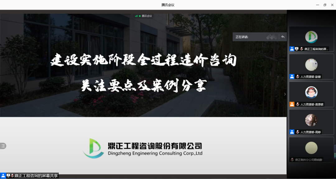 一場生動且實用的全過程造價咨詢專題培訓在鼎正珞珈多功能廳開講了,線上課堂也同步開啟,鼎正總部、各分公司以及駐扎在項目一線的110余名同事通過線上線下不同形式同時參加。