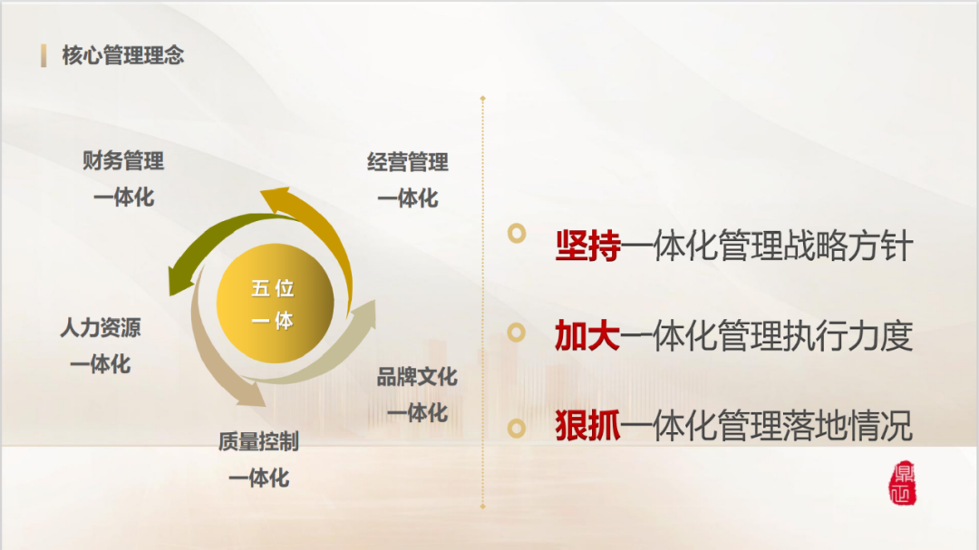城市公司發(fā)展部經(jīng)理文家佳分別從品牌文化、人力資源、質(zhì)量控制、財(cái)務(wù)管理、經(jīng)營管理五個(gè)維度詮釋了總分公司一體化核心管理理念,引導(dǎo)總分公司“共資源、共收益、同文化、同標(biāo)準(zhǔn)”,實(shí)現(xiàn)總分公司業(yè)務(wù)聯(lián)動(dòng)及全流程風(fēng)險(xiǎn)管控的目標(biāo)。