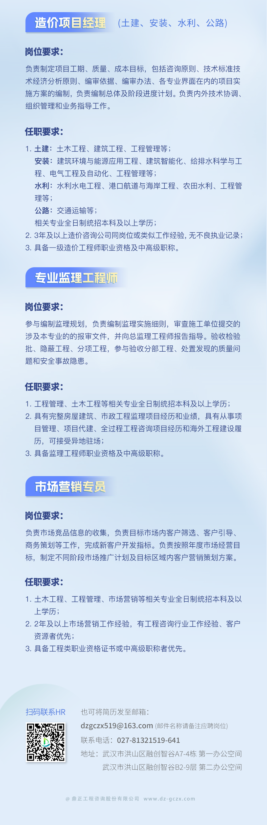 鼎正工程咨詢有限公司成立于2006年5月,公司具有工程咨詢、項目管理、工程造價咨詢、工程招標代理、土地規劃設計等多項專業咨詢資質...