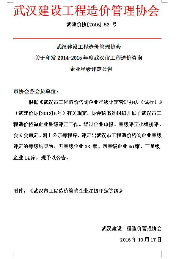 我司獲武漢市工程造價咨詢企業星級評定五星級企業稱號