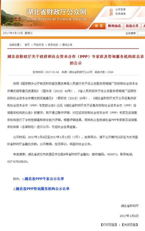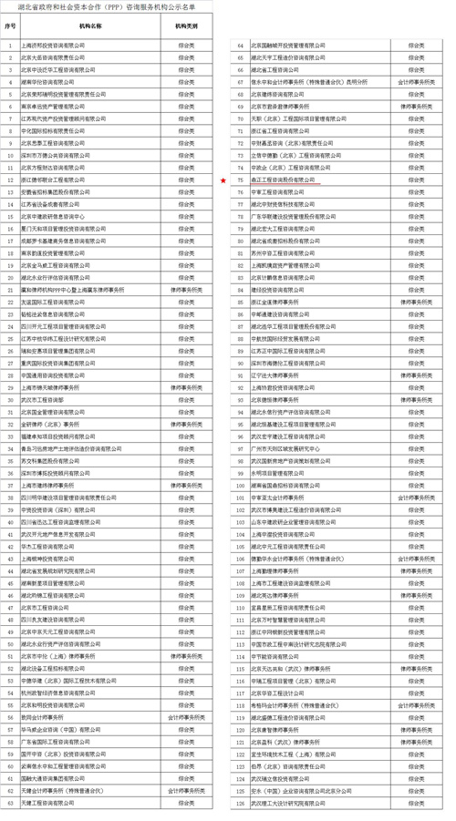 我司入選湖北省財政廳PPP咨詢服務(wù)機(jī)構(gòu)庫,同時3位同事入選湖北PPP專家?guī)?/span>