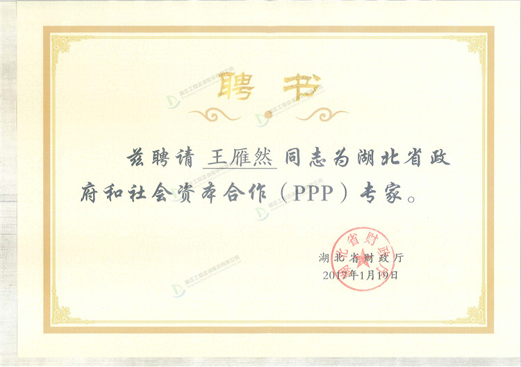 熱烈祝賀我司成功入選湖北省財政廳PPP咨詢服務(wù)機(jī)構(gòu)庫。同時祝賀我司王雁然、朱立冬、張宏亮3位同志入選湖北省PPP專家?guī)臁?BR>