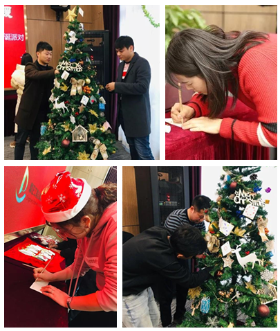 平安夜,行政人事部的同事們化身“圣誕老人”,貼心的為每一位同事準備了平安果;由鼎正大家庭共同裝飾的圣誕樹掛滿了大家親手寫的祝福卡片,為圣誕節的到來更添一份濃濃的節日色彩。
