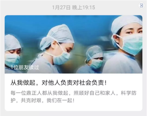 在疫情爆發(fā)之始,鼎正公司領(lǐng)導(dǎo)高度關(guān)注疫情動(dòng)態(tài),辦公場(chǎng)所每日消毒,周密防控。在封城之時(shí),呼吁全體同事安心在家做好防疫,不給社會(huì)增加負(fù)擔(dān)。